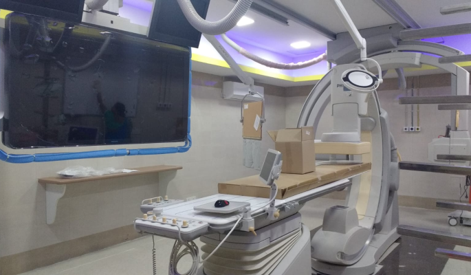 BIPLANE digital subtraction angiography unit ..in Intervention Radiology.High end procedures including Endovascular Aortic aneurysm repair, Trans Jugular Intrahepatic Porto Systemic Shunt, Stroke thrombectomy, intracranial Flow divertor, Cerebral Aneurysm coiling , Carotid stenting and other life saving procedures are performed using this equipment.